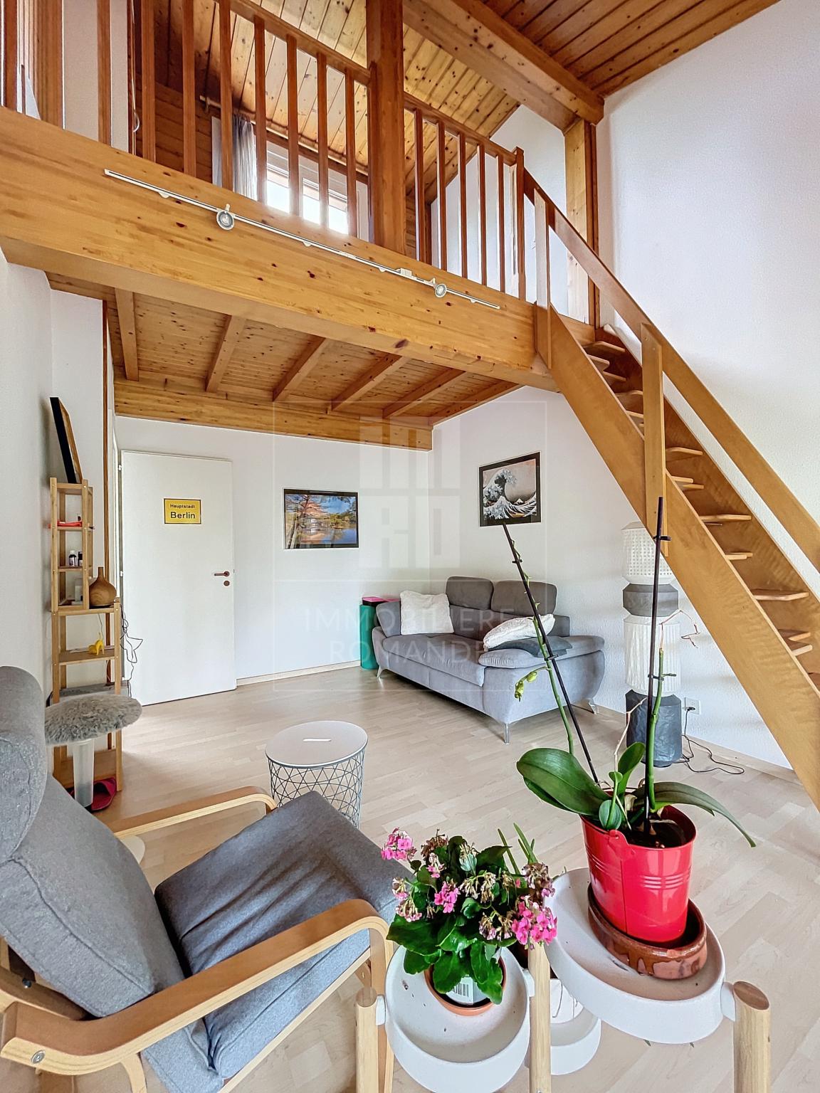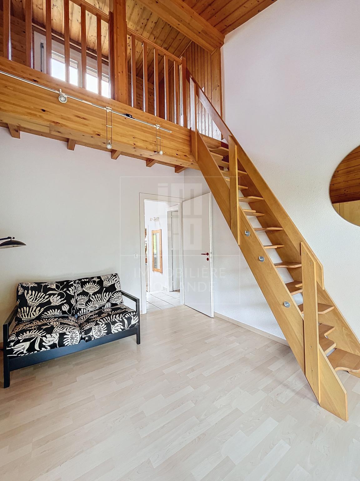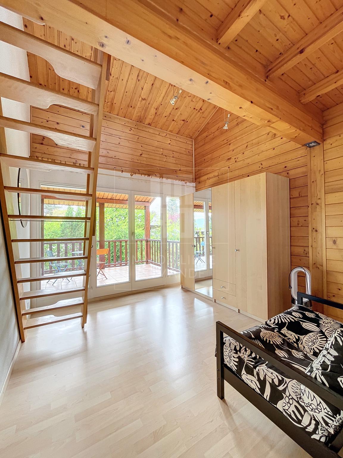 L'étage propose 3 chambres à coucher, toutes équipées de mezzanines exploitant au mieux la généreuse hauteur sous plafond, une salle de bain, un WC séparé et un large balcon-terrasse.