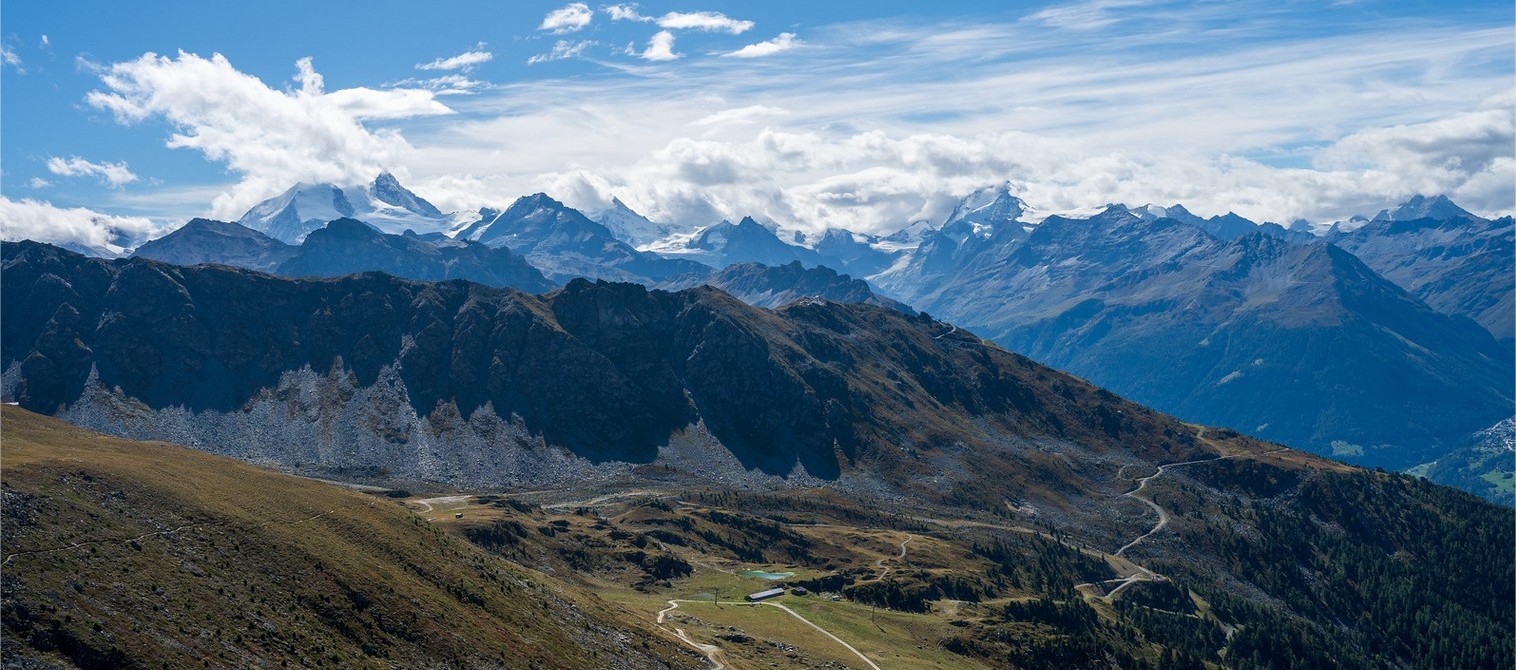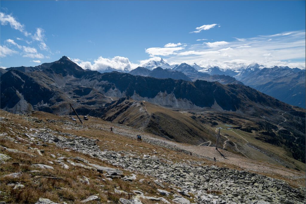 L’arrivée du “KM Vertical” au sommet de l’Illhorn, offre une vue imprenable sur la vallée du Rhône et le Val d’Anniviers.
